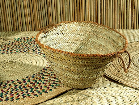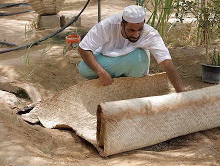 وهناك أغراض عديدة ضمن أثاثات البيت، تُصنعها النساء من سعف النخيل، وتزركشها برسومات مختلفة وألوان زاهية، مثل المهفة وهي عبارة عن مروحة يد، تُستعمل للتهوية. والمكنسة أو المخمه أو المكشه، التي تُستخدم كأداة لتنظيف البيت من الأوساخ. ويسمونها العسوإذا صُنعت من فروع النخيل بعد أخذ التمر منها، وتُستخدم مثل المخمة في تنظيف البيت أو لنظافة المزرب "مكان الحيوانات". ومن سعف النخيل أيضاً، تُصنع الجربان وهي عبارة عن وعاء يحمل فيه التمر، يُصنع من سعف النخيل، ويكون بأحجام مختلفة، كما أنّ هناك أيضاً من سعف النخيل الجفير، والزبيل، والقفة وكلها أوعية أسطوانية على شكل سلال، تُصنع بأحجام وأشكال مختلفة حسب الأغراض التي تُستخدم فيها، ولكنها في الغالب تكون بفتحة وتُستخدم لحمل الخضروات أو الأسماك من البحر، أو تُستخدم لجمع الرطب من عذق النخلة، كما يُستخدم بعضها لحمل الرمل لبناء البيت. وأيضاً هناك مصنوعات تُصنع من سعف النخيل بأحجام مختلفة، وتُستخدم لأغراض أخرى مثل المشب الذي يُستخدم لإشعال النار وتحميتها، أو لتحريك الهواء لتبريد الطعام وبخاصة للأطفال، في حين المغطى أو المغاطي وهو الغطاء الذي يحمي المائدة من الحشرات، والسلة ومعها الغطي الذي تغطى به، وتُستخدم عادة لحفظ الملابس والأغراض المختلفة، والمغمره وهي سلة يغسل فيها التمر ويترك ليجف، والكاشونة أيضاً سلة طويلة يُوضع فيها الرطب.