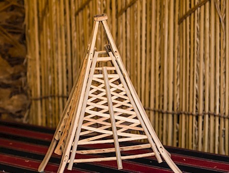 ومن ضمن أثاث البيت ما يطلق عليه "المنز"، وهو عبارة عن عيدان من جريد النخيل، موصولة مع بعضها البعض بالحبال التي تُصنع أيضاً من ليف النخيل، وتُشكل على هيئة سرير صغير، يُستخدم لوضع الأطفال أو حملهم عليه بواسطة أيادي من السعف. ويوجد في البيت التقليدي الدرج وهو عبارة عن سلم يُصنع من سيقان وفروع الأشجار، ويربط كل درج بشكل جيد بحبال مصنوعة من خسف النخيل، وهناك أنواع قصيرة منه، بعضها مجرد ساق شجرة منحوت، وهو يُستخدم للصعود للمنامة والتي لا يزيد ارتفاعها عن المترين عن الأرض والتي تشيد في فناء المنزل. أما لتعليق الملابس يُصنع ما يعرف بـ "غْدَان أو الغدان" وهوعبارة عن خشبة معدلة بطريقة معينة، يربط أحد طرفيها في جدار الخيمة من الداخل، والطرف الآخر في الجدار المقابل، ثم توضع عليها الملابس، والمطارح، والساحة، والخرج، والياعد وغيرها من الأغراض.