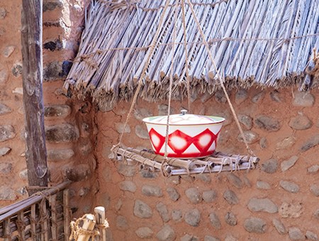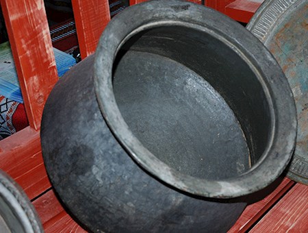 وهناك أوعية تُصنع من الجلد مثل الهبان والمندبان، والمورس، والعبيبة، وكلها أوعية تُستعمل لحفظ أغراض مختلفة منها حبوب القهوة، والارز "العيش" أو البر"القمح" وغيرها من الحبوب والمواد الغذائية، وكذلك الظرف الذي يُوضع فيه السمن، والجربة لحفظ الماء، والمقرص أو المخض لخض الحليب. كما أنّ هناك أدوات الإنارة ومنها الفنر والصلبوخ والقراعة وهما حجران أشبه بالجرانيت والرخام وبينهما مادة كالحرير، تُستخرج من ثمرة الأشخر أو يُوضع فتيل من القطن بينهما لإشعال النار. ليس ذلك فحسب فهناك القدور من النحاس لطبخ الطعام، والصحون من الخشب لتقديمه، والأدوات اللازمة مثل عدد من الخاشوقة "الملعقة" والملاس " ملعقة طويلة لتحريك الطعام، والرحى لسحن الحبوب والبزار "البهارات" بالإضافة لدلال القهوة والفناجين والأدوات التي تساعد في صنعها.