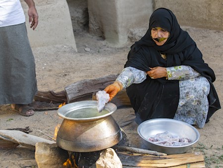في الماضي كان أفراد الأسرة وأطفال الفريج يتجمعون حول القدر التي تكفي أحياناً لإطعام نصف سكانه ، فيما كان ضارب الهريس يحضر المواد الأساسية ويضعها في القدر التي تغلي فيها المياه ، ومنها نقع القمح طوال الليل، وسلق اللحم بعد غسله بالماء في القدر، وبعد أن يضيف هذه المكونات يحرك الخليط بين الحين والآخر لمدة أربع ساعات تقريباً، مع إضافة ماء ساخن كلما لزم الأمر.