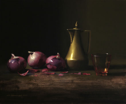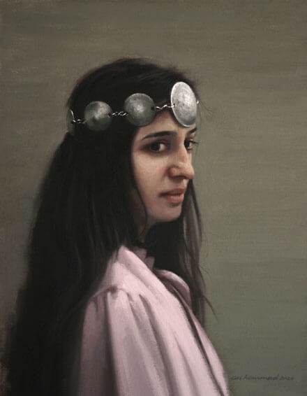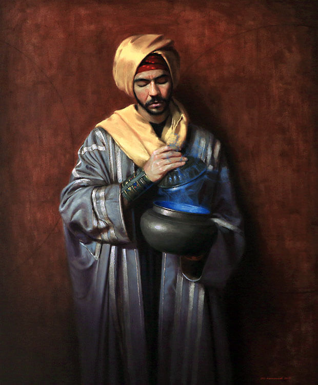 From childhood, Hammad developed a penchant towards Realism, Baroque and Academic art movements. His subject matter includes still life, portraiture and figures. The human figure and the ‘mysterious quiet’ around the still life arrangement has always been fascinating to him. Although his art practice at college mainly focused on Modern art, Hammad developed a great interest in realism which was diametrically opposed to the then-existing vogue in art. It was a challenging journey he recalls – ‘sailing up the creek without the paddles!’ Overall, having put relentless effort and zeal into his work, he asserted himself and emerged as an exceptional painter. He graduated in 2006, ‘magna-cum-laude’, and started his real journey in art. To explore the possibilities of paint, make beautiful brushstrokes, learn different tactile qualities, and above all capture the breath and the spirit in a painting – remained his forte.