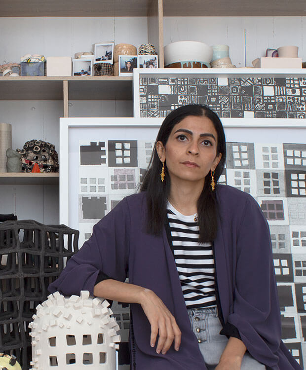 Eman Al Hashemi is an artist based in Dubai, United Arab Emirates. She graduated from the University of Sharjah’s Fine Arts and Design College with a Bachelor of Arts in Fine Arts and is an alumna of the 5th Cohort of the Salama bint Hamdan Emerging Artists Fellowship. Currently, Al Hashemi teaches ceramics at Al Jalila Cultural Centre for Children and continues to explore the possibilities to develop her practice. Her work has been exhibited nationally and internationally in exhibitions such as “Portrait of a Nation” in Abu Dhabi and Berlin and “Transition” in London and is part of the Jameel Art Collection, ADMAF private collection, and V&A Museum collection. Al Hashemi’s practice consists of a variety of mediums with a focus on paper and print. Her artwork revolves around impossible tasks, repetition, productivity, inefficiency, and confused objects and shapes through sculptures, prints, drawings, ceramics, and artist books.