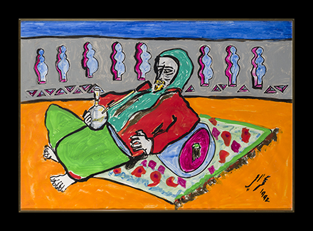 Emirati, b. 1951, Dubai Abdul Qader Al Rais received his Bachelor’s degree in Sharia Law from the UAE University in Al Ain and developed his artistic practice independently.