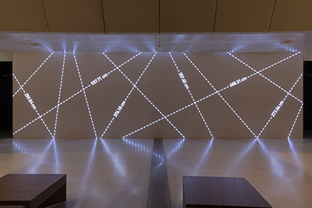 Mohammed Kazem (born 1969, Dubai) lives and works in Dubai. He has developed an artistic practice that encompasses video, photography and performance to find new ways of apprehending his environment and experiences. The foundations of his work are informed by his training as a musician, and Kazem is deeply engaged with developing processes that can render transient phenomena, such as sound and light, in tangible terms. Often positioning himself within his work, Kazem responds to geographical location, materiality and the elements as a means to assert his subjectivity, particularly in relation to the rapid pace of modernisation in the Emirates since the country’s founding.