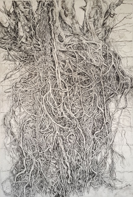 Agarwal’s group shows and projects include: In the Studio, Guggenheim Museum Project, Abu Dhabi (2021); Interconnection, Sharjah Art Museum, UAE (2021); Murals of History, Cultural Foundation, Abu Dhabi, UAE (2021); I for Inscription, Luxe Museum, Singapore (2013); Songs of Joy, Songs of Sorrow, Bhau Daji Lad Museum, Mumbai, India (2010); Surface Depth, H Gallery, Bangkok, Thailand (2010); New Asian Promises, Palais Bruener, Vienna, Austria (2009); Anomalies, Rossi & Rossi, London, UK (2009); Inner Vision, The Guild, New York, USA (2008); World One Minutes, Today Art Museum, Beijing, China (2008) and One Minute Foundation, Amsterdam, NL (2008); The Sun Rises in the East, Galerie Christian Hosp, Berlin, Germany (2008-9); Trends and Trivia, Hong Kong Visual Arts Center, Hong Kong, China (2008); Spy, Museum Gallery, Mumbai, India (2007); 48th National Exhibition of Art, National Gallery of Modern Art, Mumbai, India (2006); Nokia Arts Award Asia Pacific 2000, Insa Art Center, Seoul, South Korea (2001), travelling exhibition across 14 Asia Pacific countries, (2001-02). She has participated in collateral exhibitions of the Kochi Muziris Biennial, Kochi, India including Re-Picturing the Feminine (2012-13), Contemporary Contingencies (2014-15) and Gentle War (2018-19), in a two-person show, Gallery Oed; Art Bahrain Across Borders (ARTBAB) in a two-person show, Manama, Bahrain (2018); Art Melbourne Asia Pacific Contemporary, Melbourne, Australia (2012) and India Art Fair, New Delhi, India (2009-15); Streets have no name, Salaam Balaak Trust, travelling exhibition, Visual Arts Gallery, New Delhi, India; Indigo Blue Art, Singapore; Durban Art Gallery, Durban, the Design and Craft Center, Johannesburg, South Africa (2010); Community Arts Projects and Bihar Diwas, British Council, Kolkata, India (2011-13); Khirkee ki Khoj and Khirkee Mural, Khoj International Artists Association, New Delhi, India (2005-7). In 2021, Agarwal has exhibited in Art Space, Al Ain, United Arab Emirates. Simrin is a recipient of the Cultural Foundation Art Residency 2020.