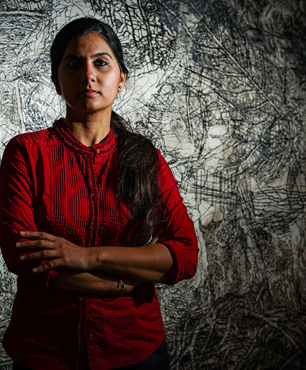 Simrin Mehra Agarwal lives and works in Abu Dhabi, United Arab Emirates. She graduated with a bachelor’s degree in Fine Arts in 2002 and with a master’s degree in Fine Arts in 2004 from the University of Delhi, New Delhi, India with a specialisation in Painting. Thereafter, she studied Sculpture at the Central Saint Martins College of Art and Design, London, UK. Simrin is the recipient of the Manarat Al Saadiyat Art Studio Residency (2021), Abu Dhabi, UAE; Cultural Foundation Art Residency (2020), Abu Dhabi, UAE; French Government Scholarship and Residency (2007-8), Paris, France; National Winner Nokia Arts Award Asia Pacific (2000), Seoul, South Korea; Sailoz Award for Excellence (2002), College of Art, New Delhi, India; and was awarded the Gold Medalist for Fine Arts 2003 from Delhi University, India.