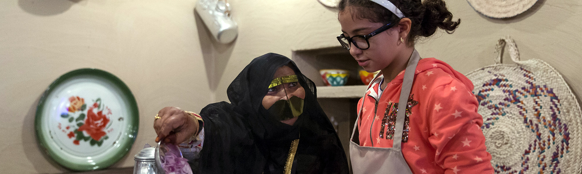 Harees, which is known for being easy to digest, is cooked in a pot called a “mash pan” and stirred with a wooden spoon called a “Masad Masr”.