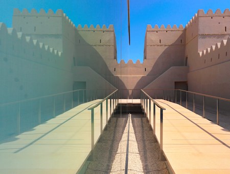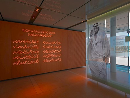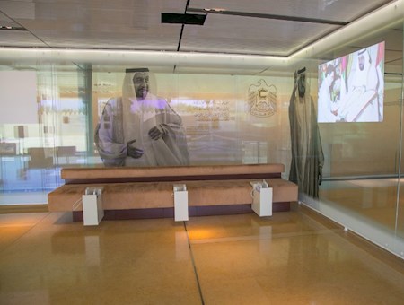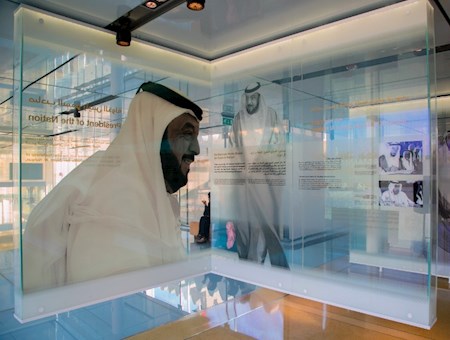 An exhibition hall, housed in a glass-walled space within the courtyard of Qasr Al Muwaiji, has been built to tell the story of the fort and its inhabitants, with a focus on the late H.H. Sheikh Khalifa bin Zayed Al Nahyan.