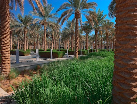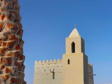Muwaiji Oasis is the smallest oasis in Al Ain and contains approximately 21,000 palm trees, as well as a falaj irrigation system that uses ground-level and underground water canals to bring water from the nearby mountains. The grounds of the fort have been used over the years for date palm cultivation.