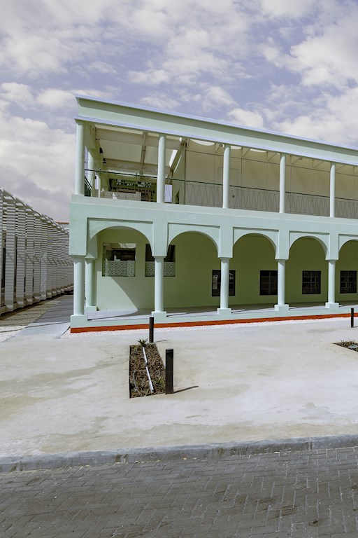 El uso de mármol natural multicolor crea resultados artísticos novedosos, como las columnas coronadas decoradas en las que las coronas no están situadas en la parte superior de las columnas, sino en la inferior. Esta extraordinaria técnica es innovadora en la arquitectura islámica.