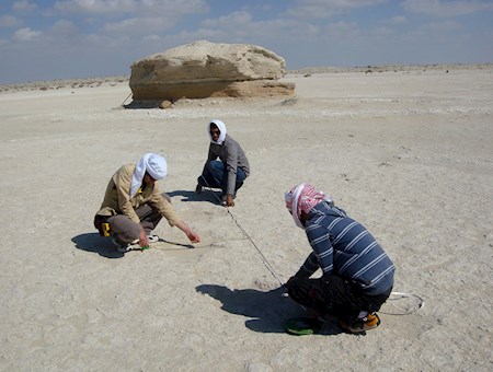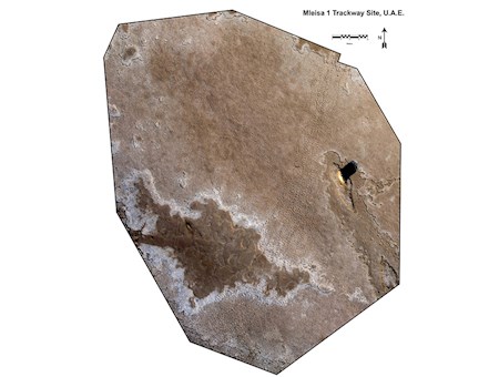 La piste d'éléphants de Mleisa, sur le site 1 de Mleisa, représente l'une des meilleures images de la vie à l'époque préhistorique dans la région d'Al Dhafra, dans l'émirat d'Abu Dhabi. Des centaines d'anciennes empreintes d'éléphants, formées il y a environ sept millions d'années, s'étendent sur une plaine plate.